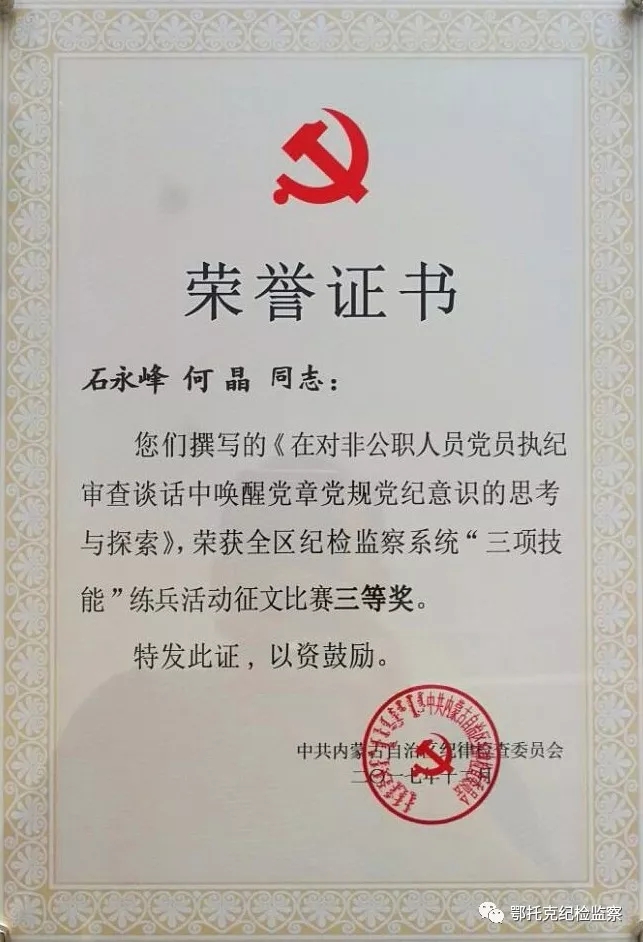 鄂托克旗纪委荣获全市纪检监察干部队伍建设年先进...